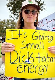 No Kings crude posters are not designed to turn the mirror to the viewer, to challenge our ideas about gender and body and power. No, these signs are just boldly, blatantly, and unquestioned emblem of the left’s anti-man sexism that cost them recent elections.