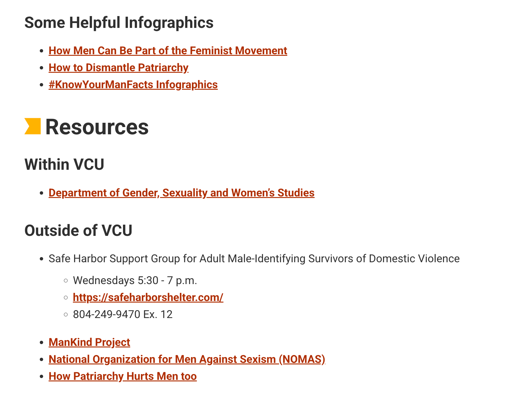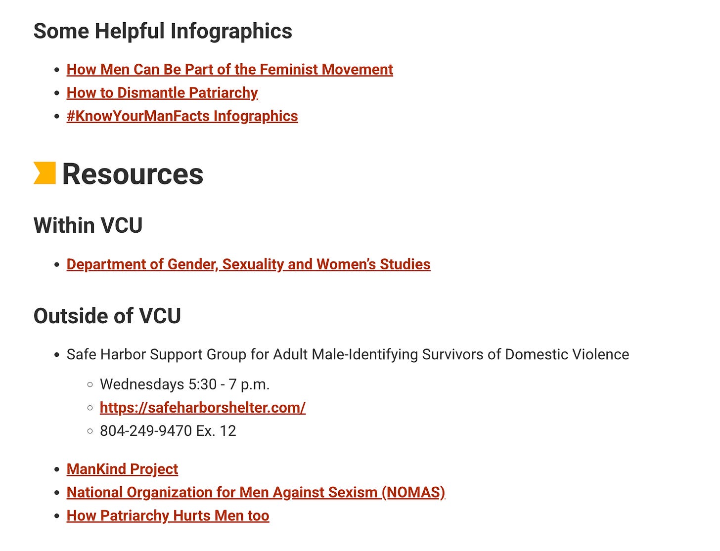Any guys who make their way to the bottom of the VCU Men and Masculinities resource guide will find: